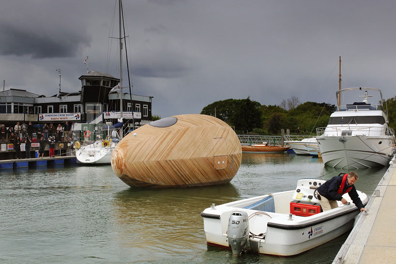 Two years ago, a group of architects, artists and engineers announced plans to create a floating egg-shaped room to be occupied by artist Stephen Turner. Last month, the fruit of their labor was realized as the Exbury Egg, an energy-efficient, self-sustaining pod was launched in an estuary of the River Beaulieu in the UK. Turner will live in the egg for 12 months while he uses the space to study the life of a tidal creek and the ways in which humans interact with nature.